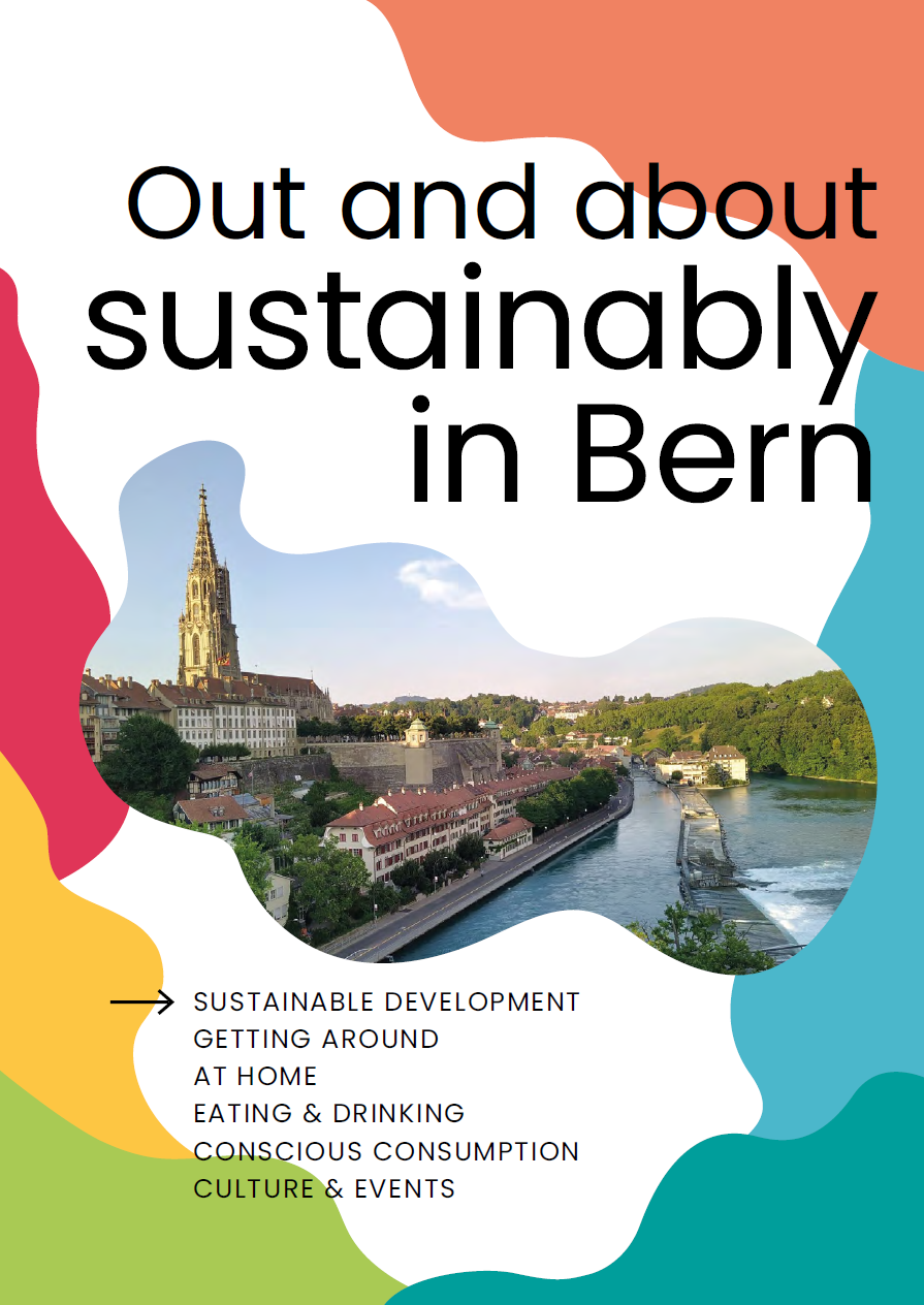 Out and about sustainably in Bern is designed to accompany students in their daily life in Bern, offering fresh ideas, encouraging independent thinking, inspiring them to try new experiences, and showing practical ways to live in a way that benefits both themselves and the environment.