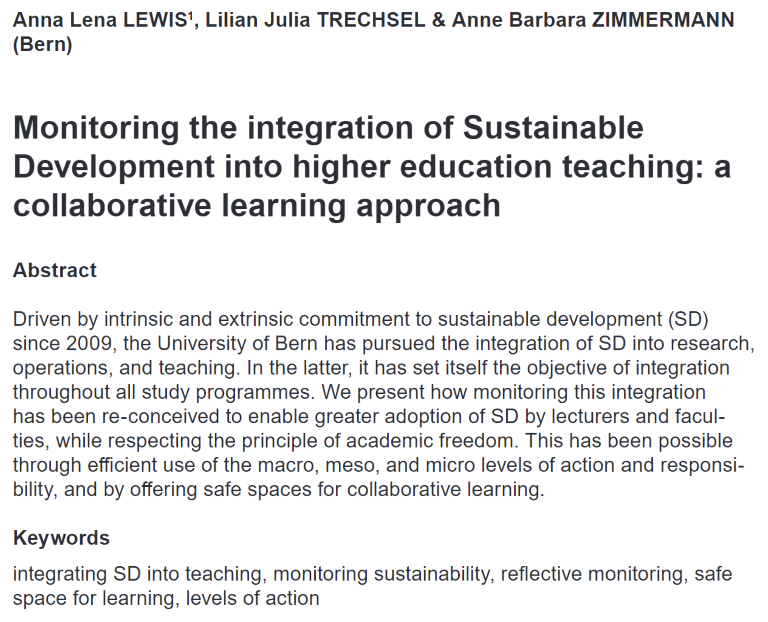 Monitoring zur Integration von Nachhaltiger Entwicklung in der Lehre an der Universität Bern